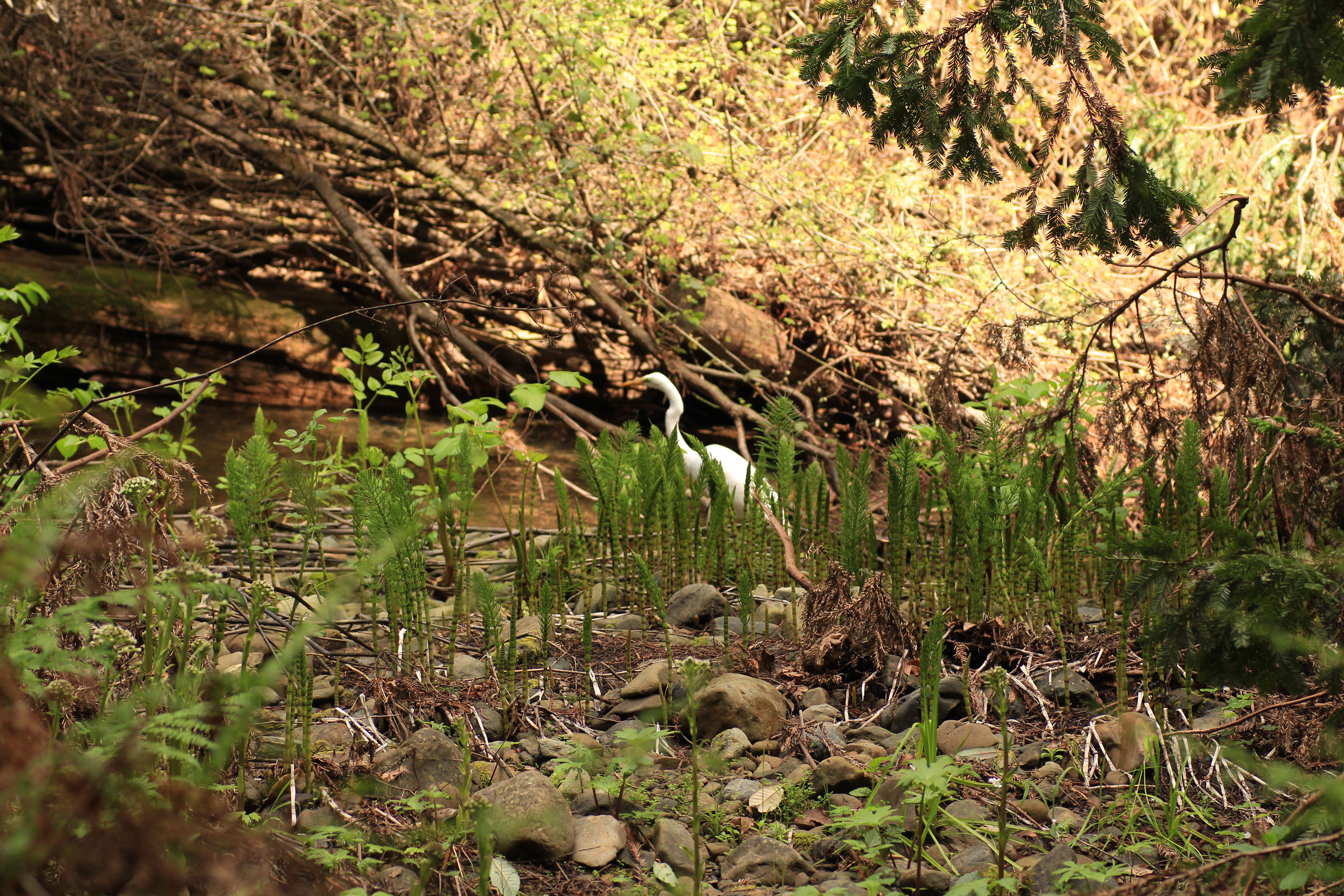 (Grande aigrette de californie qui pêchait dans la rivière à 5 mètres)