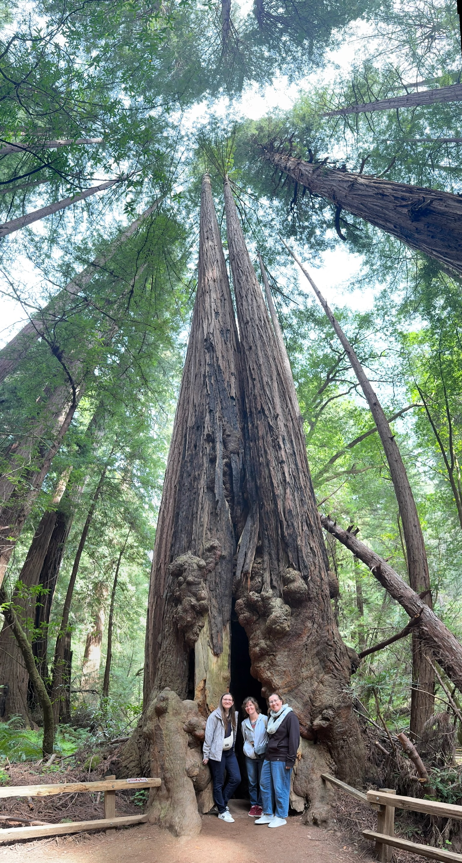 Et le lendemain, donc le 7e jour, Kady nous emmène à Muir Woods ! C’est un coin de nature où faire des randonnées et découvrir la faune et la flore, il faut traverser le Golden Gate !! C’est au nord de SF. On passe 2h au milieu des séquoia et des Redwoods en croisant des rangers très serviables qui nous proposent de faire des panoramiques.