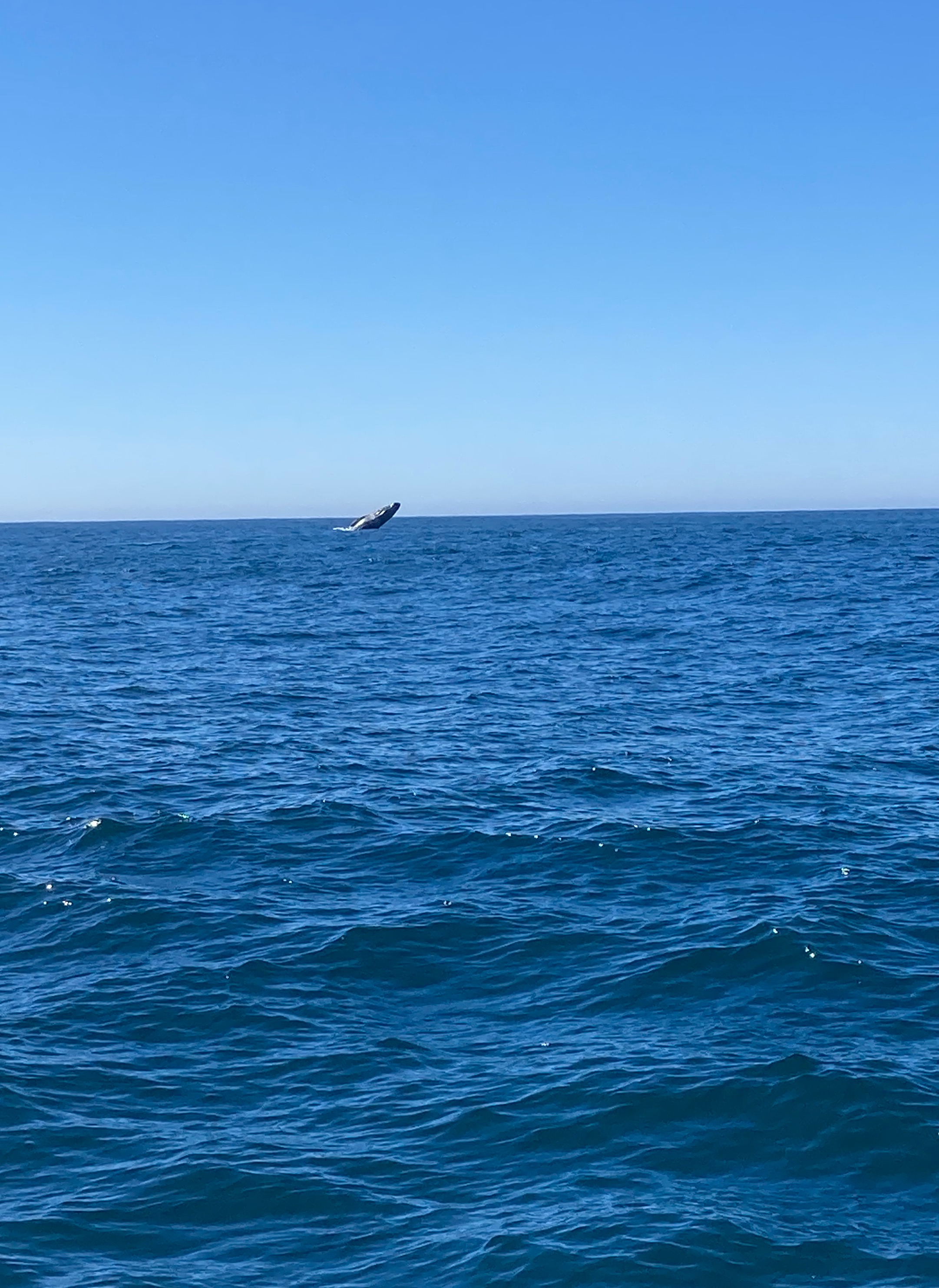 On se rapproche et (après voir vomi une deuxième fois et prié pour que ce voyage s’arrête), dans un moment de lucidité, on a droit à un super cadeau : deux groupes de baleines se rejoignent, et elles sautent hors de l’eau !