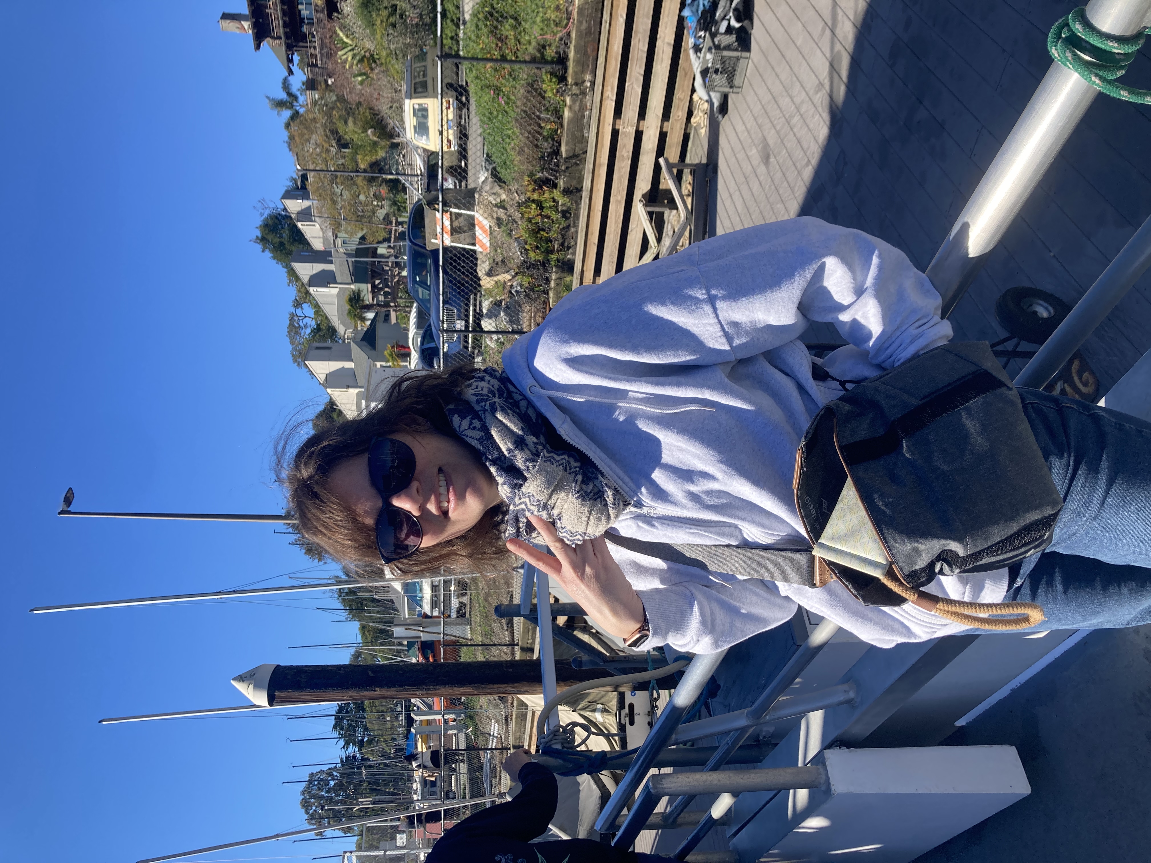 Aujourd’hui Kady nous emmène avec ses filles à Santa Cruz Harbor, dans la baie de Monterey. Programme : Whale Watching !!! On va faire 4h de bateau pour aller observer les baleines dans le Pacifique avec pic-nic sur le bateau !