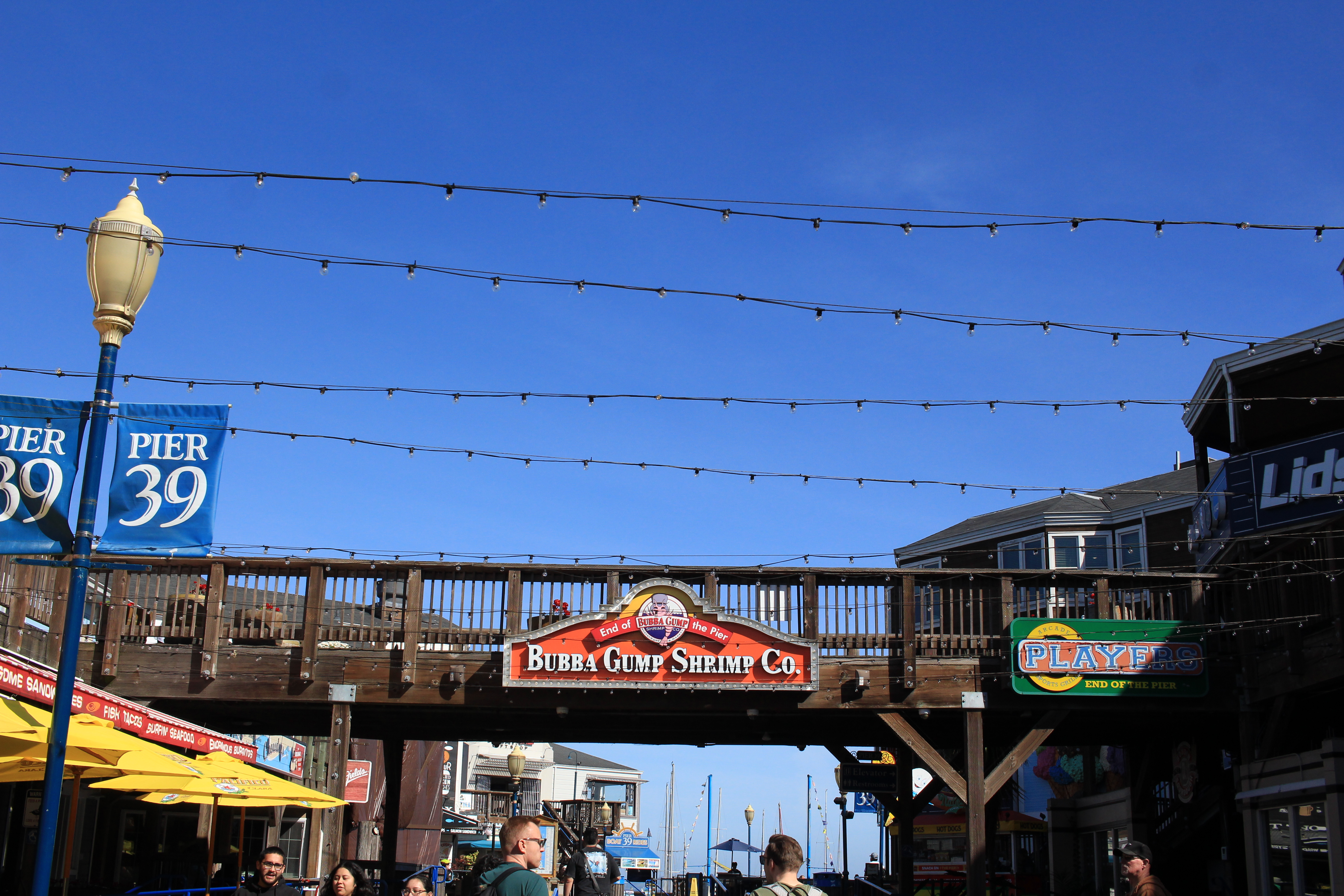 Le matin il y a très peu de monde ! Je marche sur les traces du héros de la série Monk, on passe sous le panneau « Bubba Gump Shrimp », on discute avec les vendeurs des magasins de souvenirs qui tentent quelques mots en Français. Les gens sont globalement relax et détendus, c’est vraiment agréable.