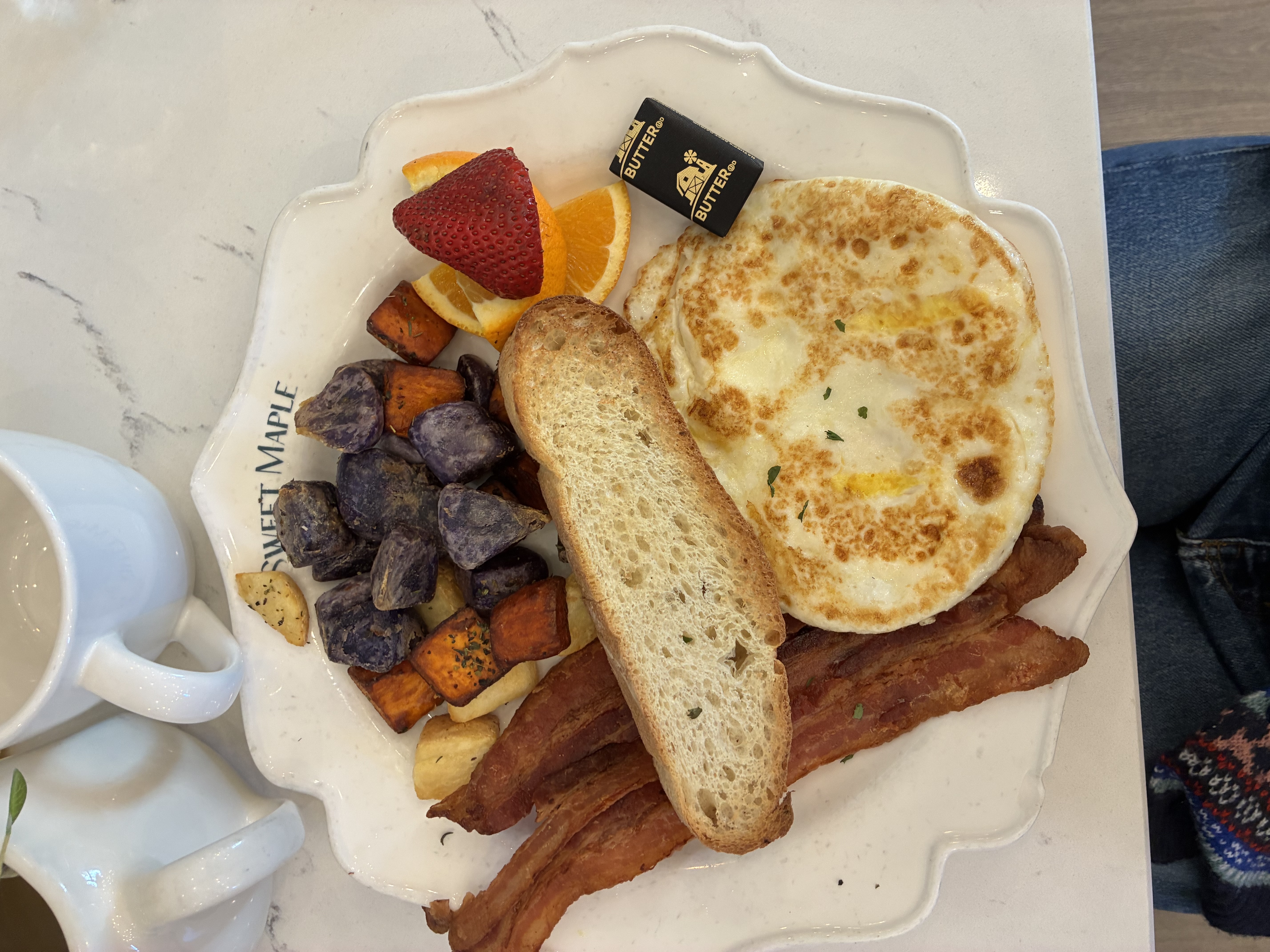 Comme on arrive très tôt en Caltrain, le train local qui relie les communes du sud à SF, on prend un brunch au « Mapple Sweet » en attendant que les magasins ouvrent.